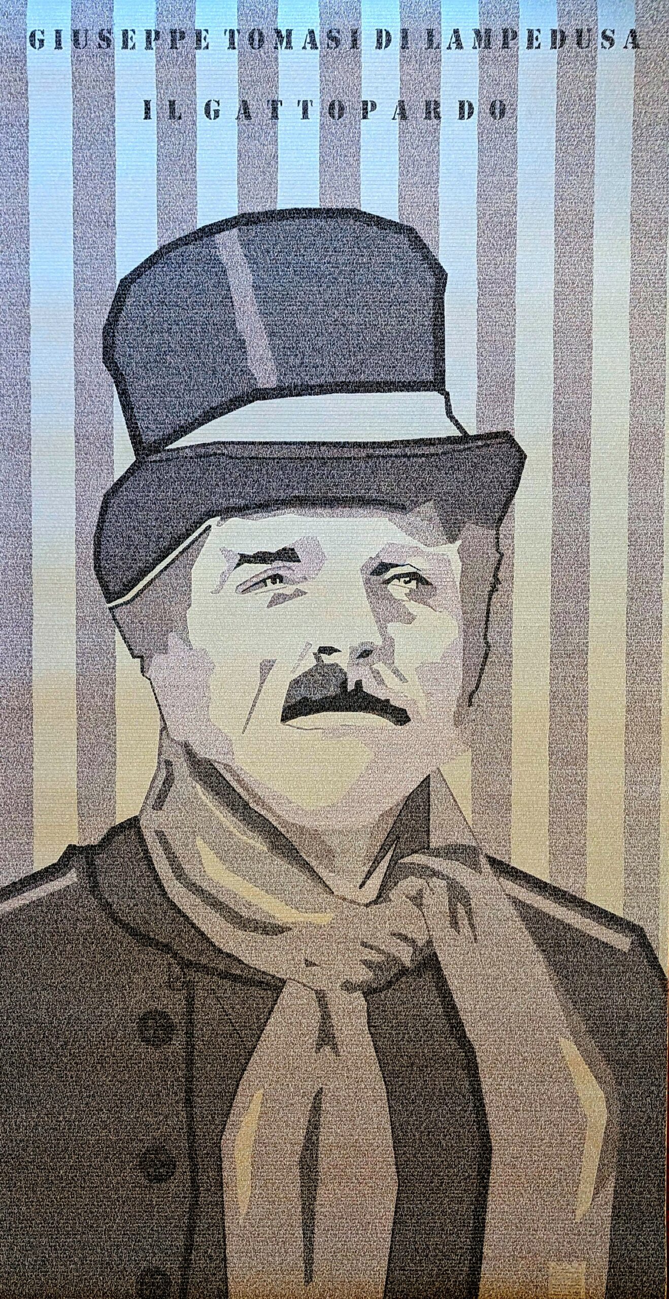 Descrizione del quadro – In questo lavoro è ritratto l’attore Burt Lancaster nel Principe di Salina, personaggio principale del libro, durante le riprese del film “Il gattopardo” diretto da Luchino Visconti (1963).